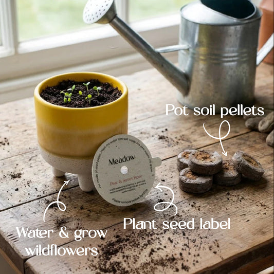 Once your candle has finished, re-use your planter pot by cleaning any remaining wax. You can then add your compressed peat-free soil pellets, add water and plant your dust cover. From candle pot to planter, without the waste!